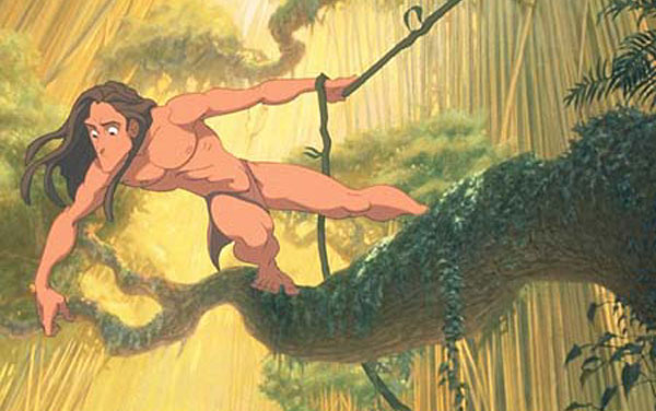 Tarzan figure who was raised as a baby-ape because he is often called the Ape Man-made has a body like an ape language. Tarzan, for example, rarely seen standing upright, more often move is like a chimpanzee. Outside of originality, the Disney version of Tarzan is a story about the search for identity perfect human child. Moreover tabahan melodious music of Phil Collins, making this film more charming.